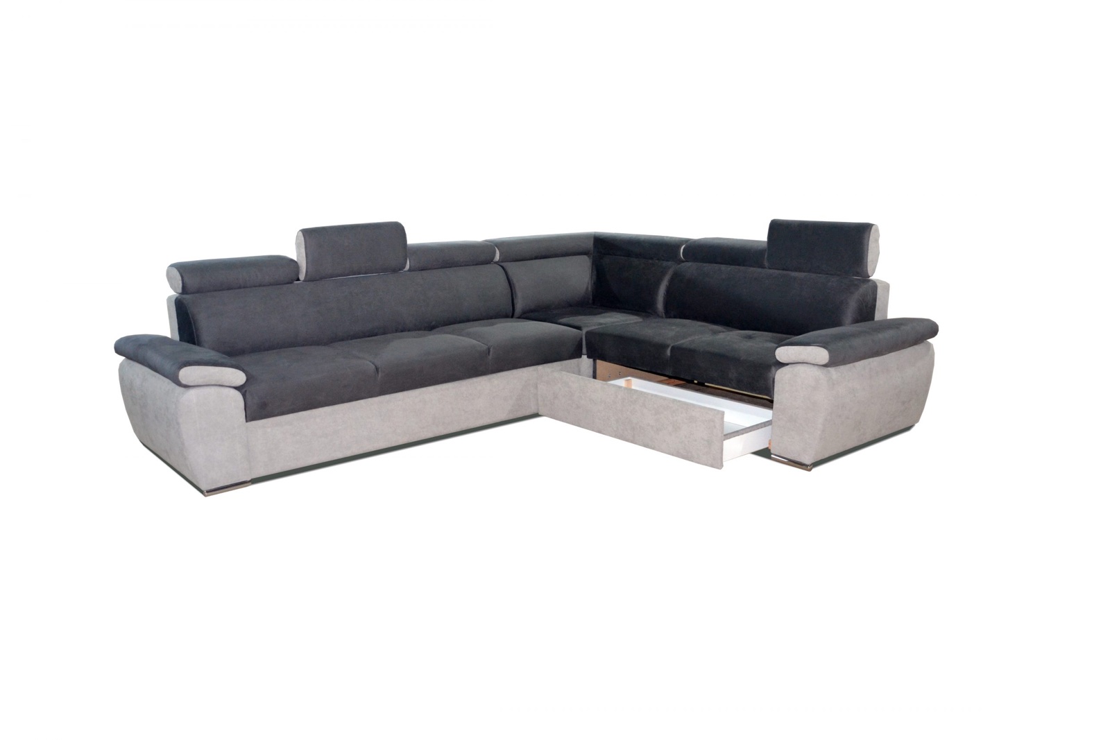 Ugaona garnitura Bella sa mehanizmom za razvlačenje čime nudi mogućnost pretvaranja u spavaći ležaj za dvije osobe. Takođe posjeduje ladicu za odlaganje ispod dijela dvosjeda. Dostupna u više dezena i materijala.