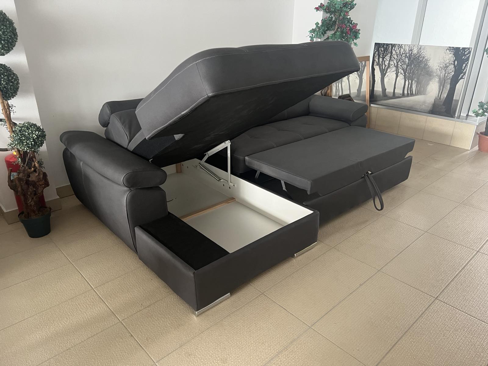Pored svog atraktivnog izgleda, garnitura „Largo“ se razvlači, čineći je savršenim izborom za svakodnevno korišćenje, ali i kao dodatni krevet za goste. Takođe, opremljena je i prostorom za odlaganje, omogućavajući vam da sa lakoćom organizujete dnevnu sobu.