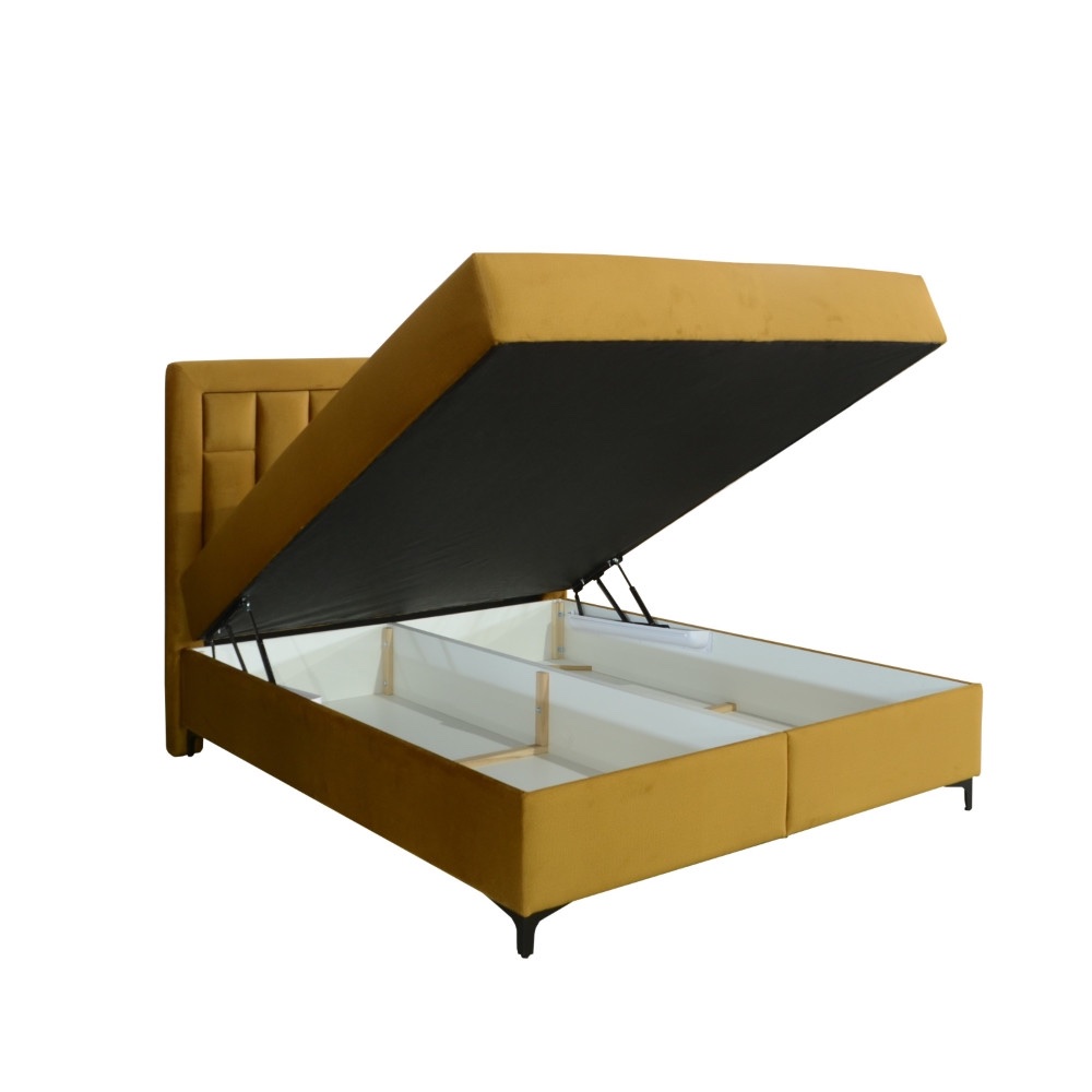 Udoban francuski ležaj, u boji i materijalu po izboru. Ležeći dio kreveta je od džepičastog jezgra a dimenzije je 160×200. Ispod kreveta se nalazi veliki prostor za odlaganje u koji možete odložiti posteljinu, jastuke, odjeću itd. Kutija za odlaganje se sastoji iz dva dijela. Uzglavlje je mekano podstavljeno PU pjenom. Noge kreveta su visoke 10 cm, crne boje i metalne. Maksimalna težina ležaja je 300 kg.